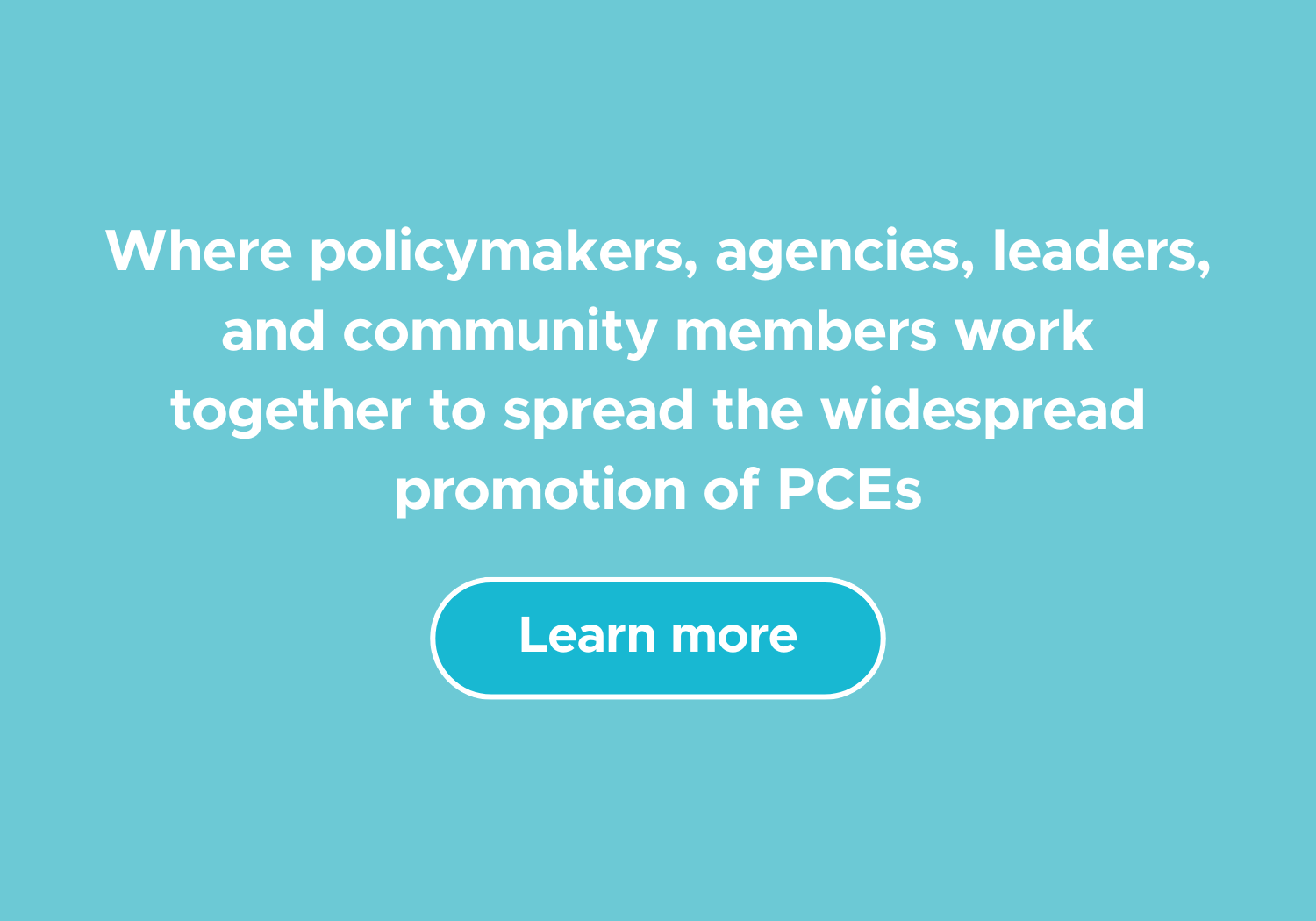 • Entire communities where policymakers, agencies, leaders, and community members work together to spread the widespread promotion of PCEs.