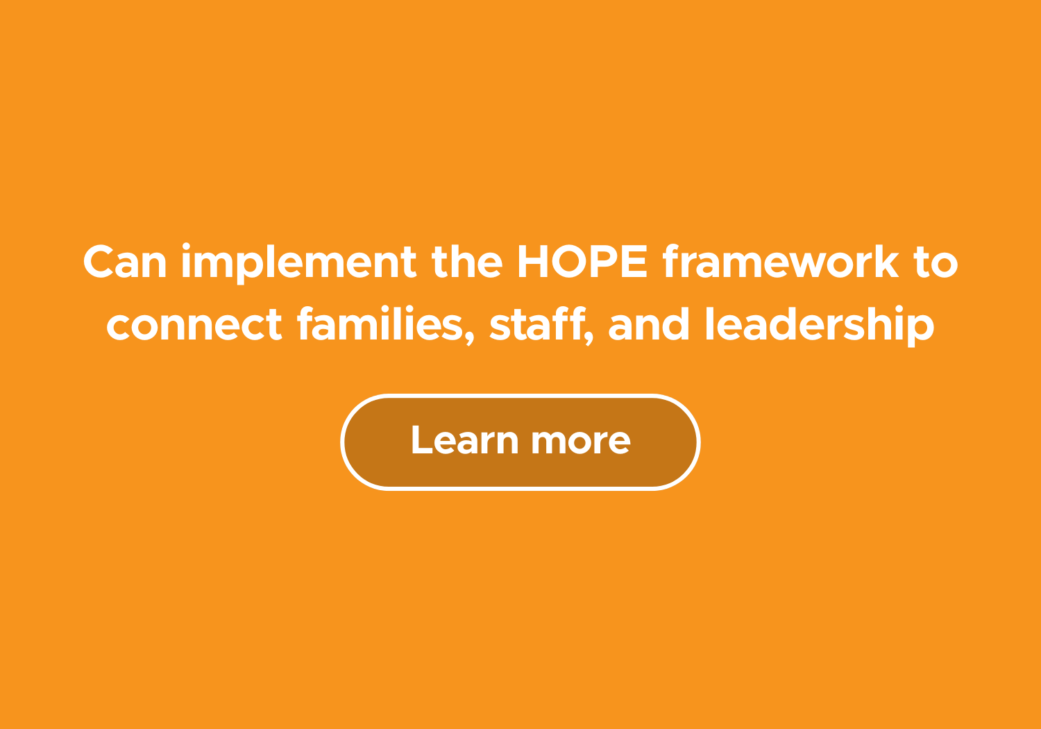 Learn more about how you can get started with the HOPE framework! As a professional, leader in your organization, community member, policymaker, or anywhere in between or beyond, you are joining us in creating a brighter world where we can consistently identify, honor, and promote child and family strengths through PCEs.