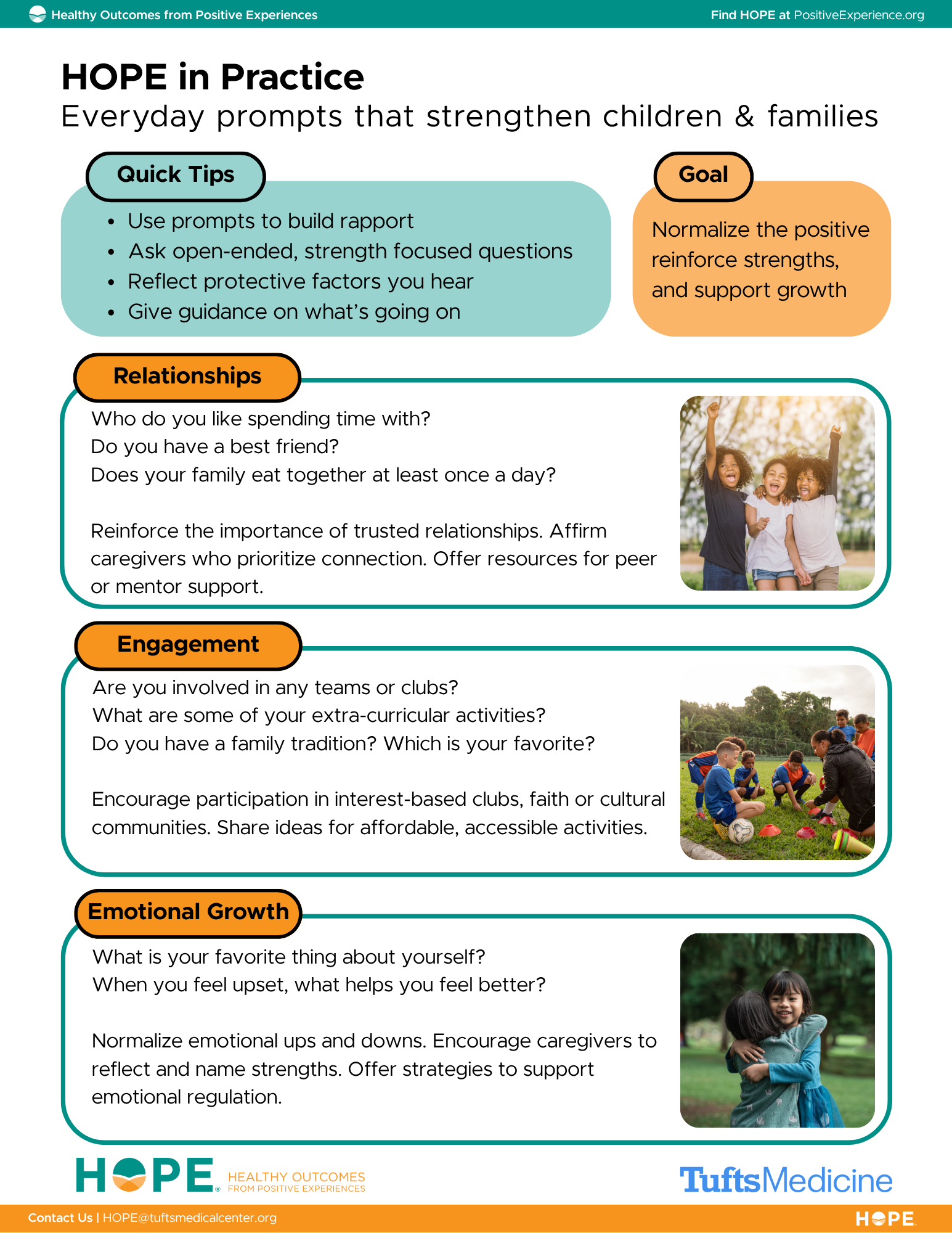 This resource was created to guide clinicians through everyday questions to normalize the positive experiences children are experiencing, reinforcing their strengths and support growth.